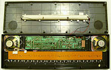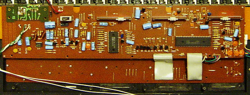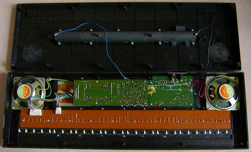 It is unbelievable that such a buggy CPU really went into production (or does only my specimen suffer of bitrot?). Possibly the programmer of ABA-88 tried to replace its fingered-only with a genuine single finger chord mode and messed up the algorithm or pitch lookup table. Even the demos (with anyway disharmonic accompaniment) are the same, so one CPU version may have been intended as a bugfix release of the other. The IC package here is wider (DIL instead of SDIL), so it may be older, and the sound IC is no original Yamaha part anymore. Due to different analogue filtering, the percussion sounds bassy and duller than in ABA-88; also the rest sounds a bit muffled and lacks warmth.
