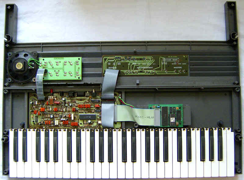 hardware detailsThe Antonelli 2495 hardware contains a lot of analogue stuff and the socketed sound IC "IMP 8529 KAG, SIEL 001.1" is made by Siel; also stamps on the PCBs hint to this company, which apparently was the genuine manufacturer.