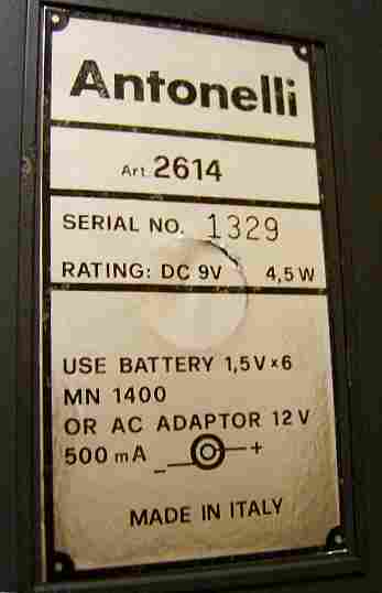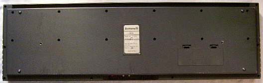 caution: A common disease of Antonelli keyboards is that the plasticizer of PVC mains cables melts itself into the case plastic, which looks like scratches by a hot soldering iron and locally turns the plastic surface and paint into tar- like goo. Also my 2614 has some minor melt marks, thus watch out to avoid direct contact between plastic case and any sticky or smeary feeling PVC cables. (Better generally avoid contact with soft PVC; also certain keyboard dust covers and -bags were made of the plasticized material.) The smeary goo residues on the case can be partly removed with vegetable oil, but be careful to wash off also the oil residues with water and dish washing detergent, since long oil contact may damage this vulnerable plastic also.