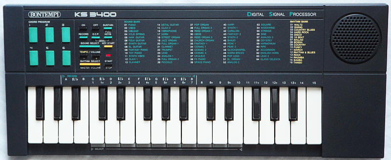 | Bontempi ES 3300 | sick sounding sound bank keyboard with absurdly crappy lo-fi rhythms |