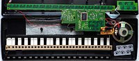The 6 drumpad buttons are also used as programmable chord buttons. The electronics (despite "made in Italy", not China) smelled badly of benzol-like nasty solvents; even washing the PCB in soap water didn't help. Only after 2 decades most of the odour faded away.
