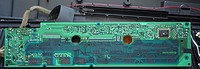 keyboard matrixThe pinout of the 15 pin ribbon cable JA (counting right to left) is:KI2, KI3, KI4, KI5, KI6, KI7, KO2, KO4, KO5, KO6, KO7, KO8, KO3, KO1, KO0 KI0 is on the 2nd diode of the horizontal diode row in the middle of the PCB. KI1 is at the 3 diodes with the "9" near the 'mode' slide switch. KO9..14 are accessible on the PCB back at corresponding panel button contacts and KO9 only as unused CPU pin. I examined this keyboard matrix by myself, based on the Casio CTK-450