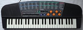 The sound of this instrument is almost identical with Casio MA-130 (see there) but instead of the "poly/ texture" button there is a "tone mix" button to layer any 2 preset sounds, since the tone generator apparently has doubled internal polyphony. Also the "piano" sound is more natural with higher resolution and noticeable sampled attack phase. (I prefer the MA-130/ SA-series piano.) The fact that Casio omitted in this hardware the annoying button press click noise shows that it was either considered a more professional "non-toy" model or that Casio thought the LCD (which is absent in cheaper variants) will be sufficient to confirm button presses.