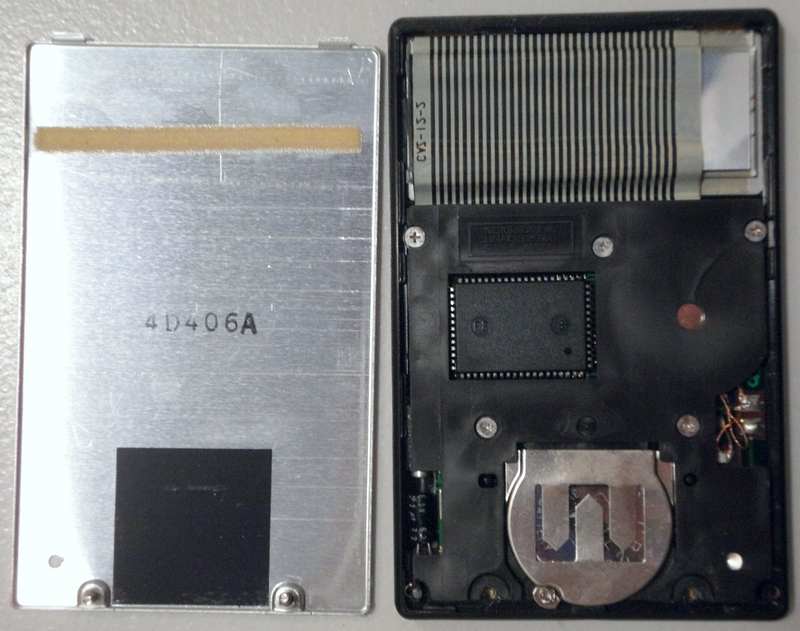 hardware detailsThe Casio ML-90 is based on an unidentified version of the D1864G CPU (crystal clocked likely at 32.768 kHz), which directly drives the piezo speaker. This CPU is soldered upside-down, so the print side can not be seen, but by pinout and behaviour it is almost for certain a software variant of the same CPU like in Casio ML-81.