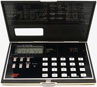 Once upon a time, calculators at school were considered as cool as nowadays smartphones. Although still mostly banned in math lessons as a cheating tool, kids boasted with having the newest calculator with the most interesting non-mathematical features. So as a highend gadget, the German retail price of this one was (if I remember well) quite enormous 119DM (equals roughly the same in modern Euros). But with 12 melodies, musical calculation result rendition and alarm clock calendar complications it was a technical marvel of its time, that despite high initial price sold quite well, so nowadays it is fortunately not rare.