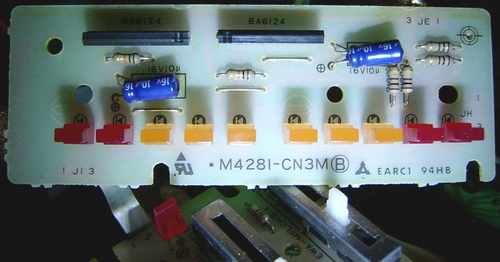 But this is only half of the trick, because when used normally, you will only get 5 additional sounds because these new inputs ignore the "select" button (even the "select" LED unlights by pressing these buttons until you switch back to a normal preset sound). Possibly Casio planned here to release also a 25 preset sounds variant of this instrument, although I never saw any of these. To get the 30 sounds mode, a diode has to be connected at JC6->JB13 during power-on reset; when added or removed later, the CPU simply ignores it. But when enabled, the preset sounds are in different order and thus don't correspond to the control panel writing anymore. Instead of adding a fixed diode, for experimentation I wired it through the 2nd channel of that (2 channel) alternating switch, thus the 30 sounds mode is now only enabled when I switch it on during power-on, while otherwise everything stays normal. (The CPU ignores the diode when the switch is set later, thus here the switch still enables the 5 sounds from the 25 sounds mode.) 20 sounds mode: (5 additional sounds)
