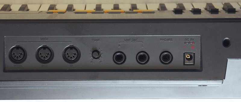 jacks for AC adapter, headphone, lineout, MIDI in+out+through