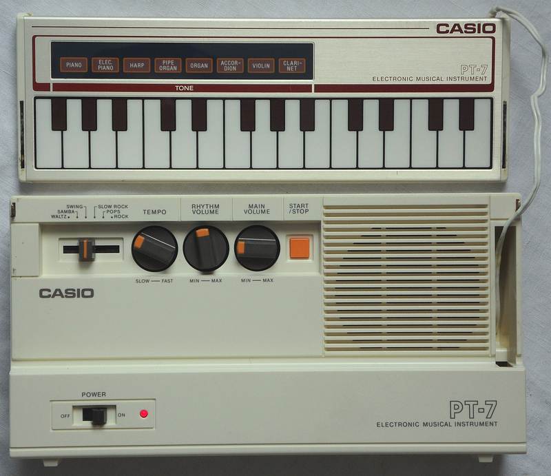 | Casio PT-7 | instrument with tiny polyphonic touch sensor keypad & analogue rhythm |