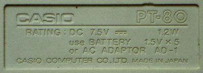 hardware detailsThe Casio PT-80 was a cheap monophonic keyboard with ROM-Pack slot, based on the single chip CPU "NEC D1868G 007". A midsize version (with different PCB layout) was Casio MT-18.