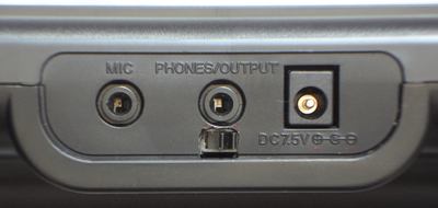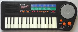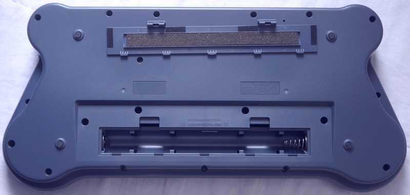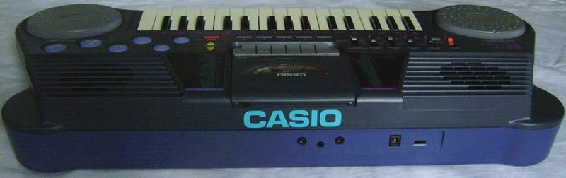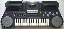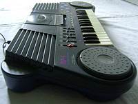 The rhythm set differs from the usual SA-series. It is focussed on rap/ hip hop stuff, and some patterns contain fixed key accompaniment. To enable rhythm, the power switch has to be set to "rap" position, which makes the main voice monophonic. Operating any drumpad or scratch disc mutes rhythm for the rest of the bar. Like with most toy keyboards, the scratch disc is fake; it is spring loaded and does not more than pushing on 2 buttons (1 per direction).