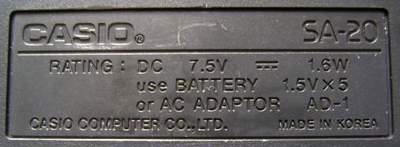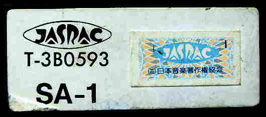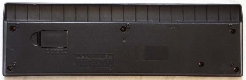 This odd sticker says: "SA-1, JASRAC T-3B0593" and has some Japanese characters. Someone wrote me that JASRAC is the Japanese music authors copyright organization, similar like the German GEMA. Most later sample based Casio keyboards (since Casio MT-540) have such a sticker. Apparently this only refers to included demo songs when they are no traditionals. I first thought that also accompaniments or even the samples itself had been registered there, but older Casio keyboards with only few (like SK-1) or no samples have none, independent from their accompaniment complexity. |