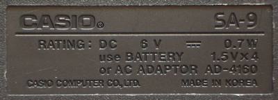 hardware detailsThe Casio SA-1 is built around the CPU "OKI M6387-01". The amplifier IC "Motorola AN8053" also works as its 5V voltage regulator.