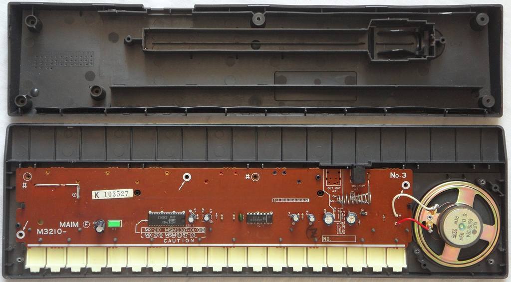 CPU= "OKI M6387-03, 233512, Japan" (30 pin SDIL) different demo "American Patrol" (in Glenn Miller bigband style) no sound output jack