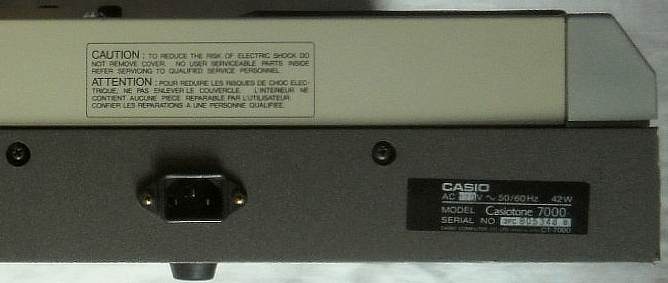 hardware detailsThe Casiotone 7000 is built from MT-65 hardware (see CT-410V) with an accompaniment CPU D930G 011 and here 2x sound IC D931C. Very unusual is that everything is here controlled by an additional CPU D7801G 109 (crystal clocked @4MHz), which was likely done to support 61 keys those the D930G standard version 011 can not handle.