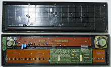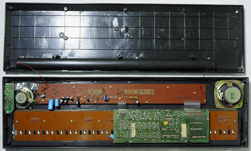 Like with Ramasio 892, the key rubber contacts are not silicone; they were partly greyish discoloured and one rubber cap was even torn. Many were sticking to itself at the folded edges (from misplaced installation?). I guess they are of butyl rubber, which tends to be as vulnerable as latex, thus be careful not to bring oil (except silicone) or any other fatty substances in contact with them, which would likely dissolve the rubber. It may be also a good idea to store this instrument in an airtight PE or PP plastic bag to protect the rubber from airborne ozone and phthalate. I also repaired a broken plastic hook under a key.