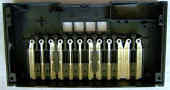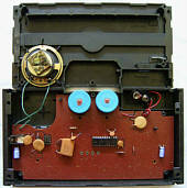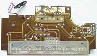 The 3 preset rhythms are made from a POKEY- like low shift register noise hihat and 3 squarewave congas those are very melodic and rather resemble the synthetic "xylophone" sound of other squarewave keyboards. The low conga resembles the base drum on Hing Hon EK-001. The patterns are complex and have each 32 steps; I would rather consider them monophonic fixed- key accompaniments (resembling Casio MT-40) than normal rhythms. The rhythms do not change their pitch and speed with the tuning knob but tempo can be only set with the tempo button, which cycles through 3 speeds and rhythm stop.