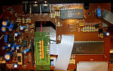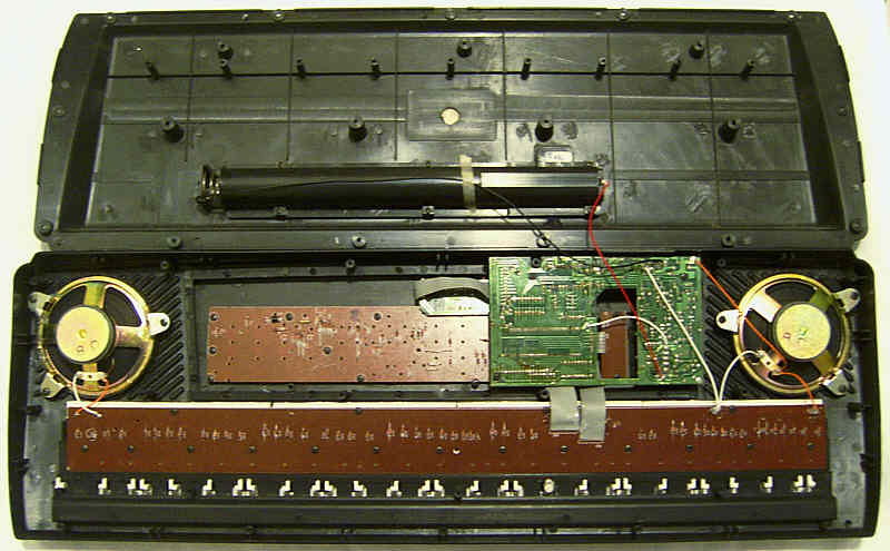 cables of EK- keyboards and the darker PCBs with flimsy grey ribbon cables
