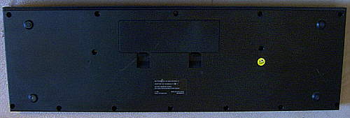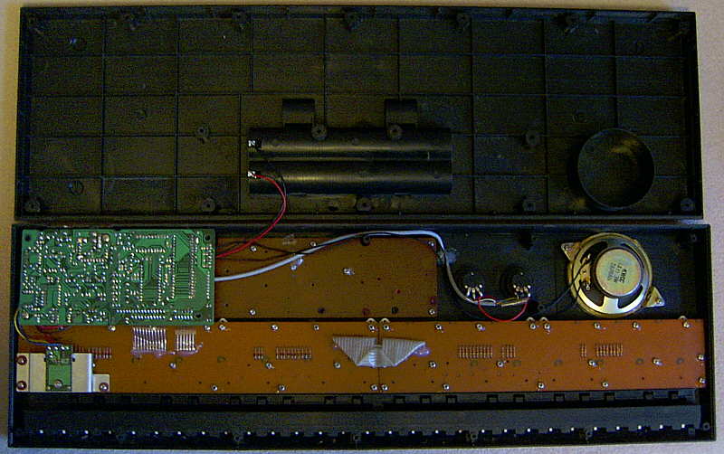 This instrument from 1985 (bottom type sticker) may be the ancestor of all no-name keyboards with bipolar squarewave sound engine. Like MC-3 and its variants it employs the Yamaha 4 channel soundchip DSG, but unlike these, it additionally has analogue percussion.