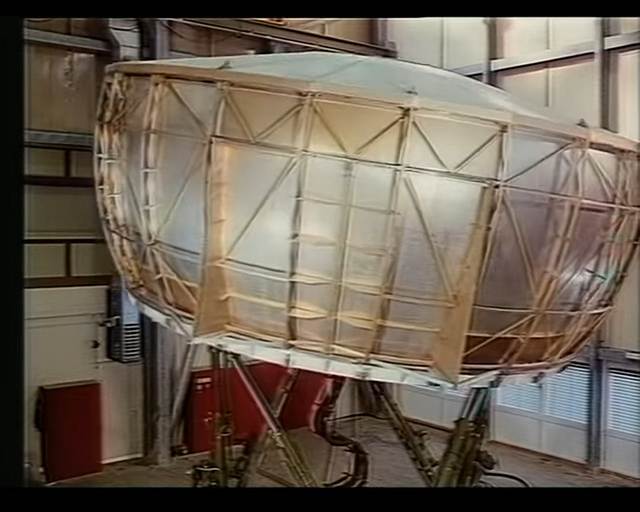 Daimler-Benz-FahrsimulatorIt is said, in Germany a toddler's first 3 words are Mama, Papa, Auto (mum, dad and - well, have a guess). In my childhood around 1980 Western Germany considered itself an automotive nation, CGI was new and driving simulators part of our pop culture. Demonstrated on TV as cutting edge technology, they were seen as scientific research machines and (like particle accelerators) known to be unimaginably expensive.So the Daimler-Benz-Fahrsimulator did cost 25 million DM and was the most advanced of its time. The apparatus was installed in the Daimler-Benz-Werk Berlin-Marienfelde (groundbreaking 1981-11-06, first operation 1984-10-19) and employed Evans & Sutherland simulation technology running on a supercomputer. According to specs found on the mercedes-benz publicarchive site (press info PRMIT19611 of 1985, english PRMIT22719), it had a motion cell for whole car body, diameter 7.4m, weight 4.7t, acceleration force 1.25G by 6 hydraulic cylinders. A Gould mainframe for realtime car model controls parrallel "sattelite computers" for motion, imaging, sound and forces. It computes 2000 equations for driving dynamics every 10ms. Imaging employs 6 projectors for 180° view, 50fps, 1.57 megapixel, computed every 80ms (quote: "a homecomputer would need each 65 years"), including weather and traffic. Landscape size 512 x 512km. Also digital audio is updated at 50 fps from vehicle characteristic curves. The purpose was to make a digital twin for virtual pretest of new car parts, concepts and ergonomics, and doing physiological research of driving and accident risks. This is footage with screenshots from 2 German