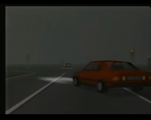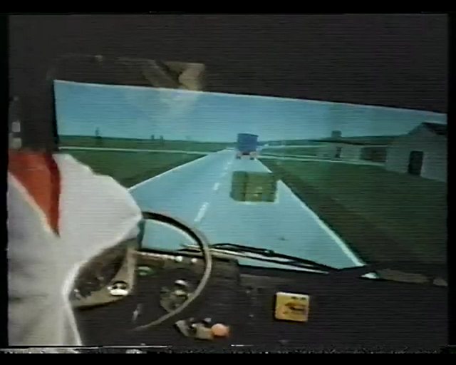 I also remember a TV docu of a research(?) simulator with big projection screen depicting block graphics with score displays of (what I later identified as) Nürburgring 1. The strange thing is it was in colour with the guide posts in yellow on green background (possibly with blue sky), so it may have been modified N1 hardware.