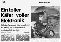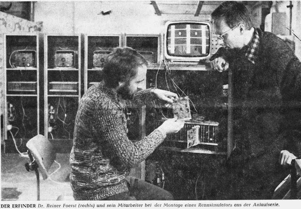 In 1997 had I asked in usenet newsgroups about a once famous kind of driving games that nobody knew. It took me years to find out who created the mysterious 3D car racing arcade machines I saw in my childhood. It turned out, he even invented in 1975 the German predecessor of what was later copied by Atari as Night Driver - the world first 3 dimensional arcade driving videogame ever! - and much more - Reiner Foerst was the father of simracing.
