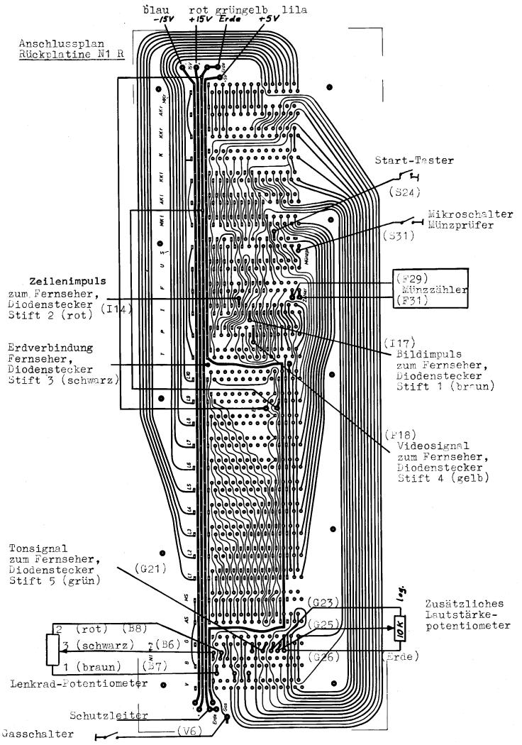 The N1 hardware contained 28 cards in an industrial rack, employing no CPU but an analogue computer for the simulation model, road graphics and sound. Only the character generator (drawing dashboard numbers on screen) was actually digital, so the technology rather resembled a Magnavox Odyssey than arcade version of Pong.