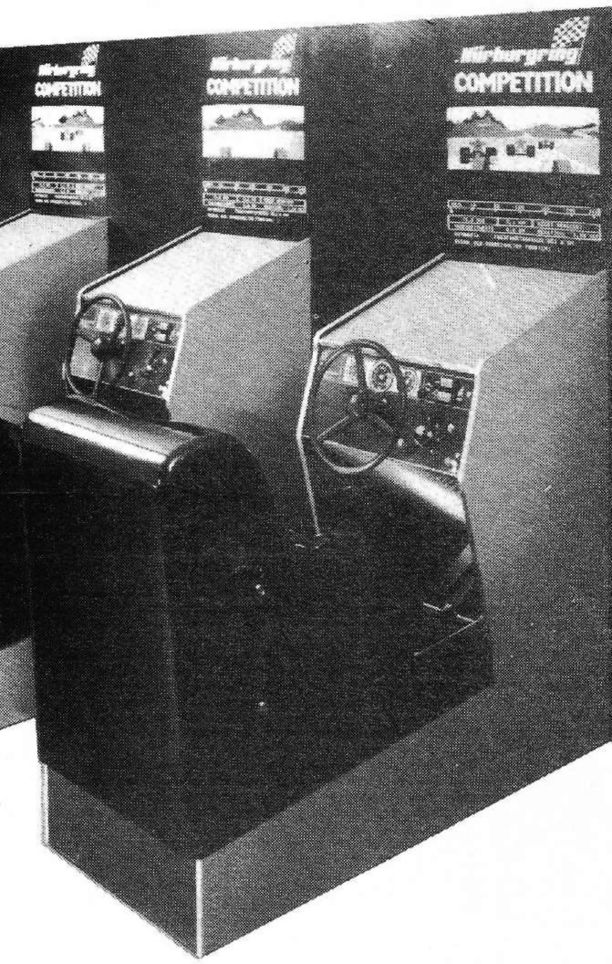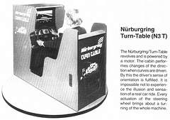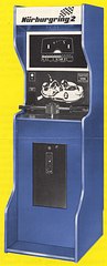 Meanwhile I managed to identify and describe here the whole Nürburgring arcade game series. Its successors became serious driving simulators. I finally added some pictures, screenshots, cultural context and even a few bits of scarce tech info about this barely documented key piece of videogame history. This is the origin of realistic driving games.