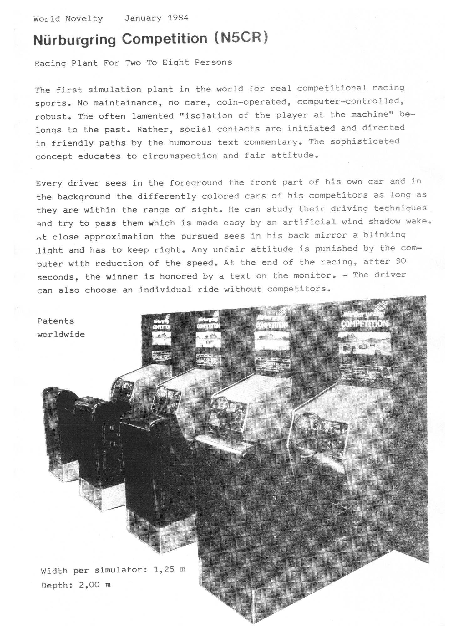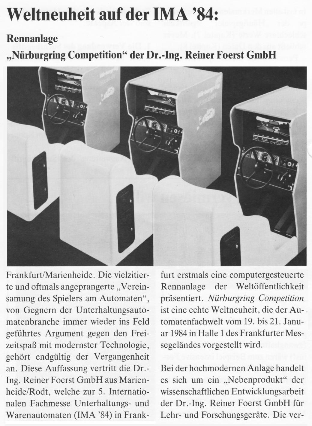 The "Nürburg Ring" game machine must have been something really old (like "Speed Freak") and I wish to know if this was a Germany- only release or if it is something more commonly known in the world. (I also would enjoy to see an emulation of this, although I guess that this game would be not much fun today.)