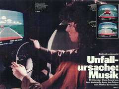 Far away in the temples of math and velocity, to common people these mythical machines were completely out of reach. So the closest they could try out for themselves was a Nürburgring arcade machine. Here in Germany these games were as popular as Pole Position. Die Fahrbahn ist ein graues Band - weiße Streifen, grüner Rand... As a symbol of progress, screenshots were used in ads and magazines. Also the album cover of Kraftwerk's "Autobahn" with its mountains was obviously inspired by the style of Nürburgring 3. In the first halve of 1980th people associated both with each others.