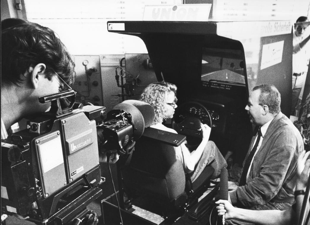 projection screen, and the most advanced machine at Volkswagen ("VW-Fahrsimulator")
