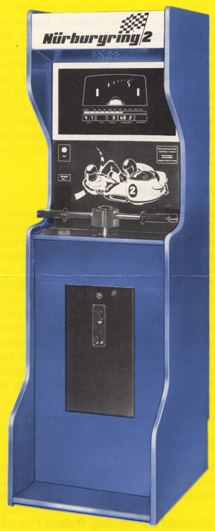This blog-like website has much info about early racing games, including excerpts of arcade prospects of Nürburgring and related arcade machines. Unfortunately it is somewhat messy and very hard to search because everything is on PDF pages.