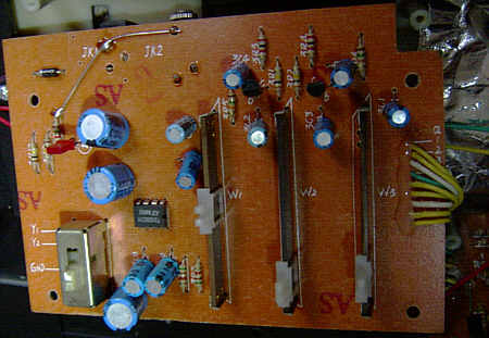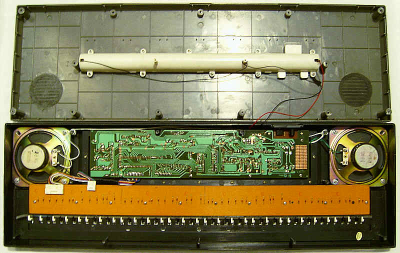It is unbelievable that such a buggy CPU really went into production (or does only my specimen suffer of bitrot?). Possibly the programmer of ABA-88 tried to replace its fingered-only with a genuine single finger chord mode and messed up the algorithm or pitch lookup table. Even the demos (with anyway disharmonic accompaniment) are the same, so one CPU version may have been intended as a bugfix release of the other. The IC package here is wider (DIL instead of SDIL), so it may be older, and the sound IC is no original Yamaha part anymore. Due to different analogue filtering, the percussion sounds bassy and duller than in ABA-88; also the rest sounds a bit muffled and lacks warmth.