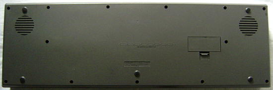 Like the Rhythmic 2 it features as well the demo melody "Blue Danube" (which is the demo of my HBATEC keyboard) as "For Elise" (which is the demo tune of the Testron), although all versions are arranged differently. The demo tunes of this instrument sound extremely off and weird; their accompaniment keeps playing with arpeggio in always the same key (i.e. no chord changes) and thus sound extremely disharmonic. I don't know whether this was intended as a bizarre sort of oriental free jazz medley, or if the programmer of this demo rather typed in the notes within few minutes without ever minding or verifying how it sounds. The oriental winged horse "ABA" logo suggests that it was possibly built by or for Arabian countries with their typical music style in mind.