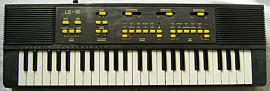 Like Testron, the ABA-88 is stereo with lovely warm timbres and has a bronze coloured case which is a little wider than the keyboard, but the functions resemble rather the Rhythmic 2, and also the case is flatter and less deep. Like both it employs a Yamaha 4-channel squarewave soundchip with some additional analogue percussion.