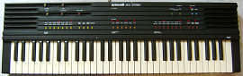 This keyboard from 1988 (sound IC date?) was apparently a more expensive predecessor or professional version of the Antonelli 2495. It has the same semi- analogue sound engine with analogue percussion and versatile accompaniment, but additionally it is stereo, has individual buttons for OBS controls and a duet/trio mode which permits interesting live play tricks.