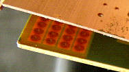 The electronics is placed on 2 stacked PCBs with a copper coated empty
