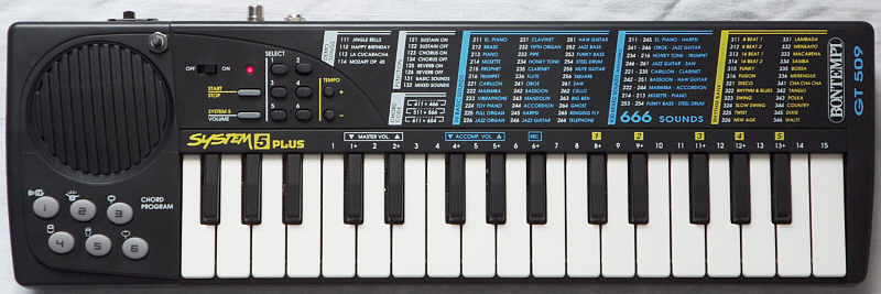 A modern successor of GT 509 is the Bontempi Genius GT 530 (only 24 preset sounds, 18 rhythms, 18 nice demos, 6 DJ samples | I own one), which wavetable main voice is only 2 note polyphonic and a polyphony bug prevents fast play. Thus the GT 509 is more interesting for making music.