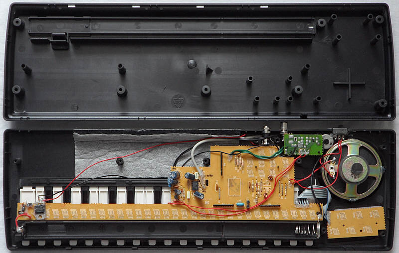 The 6 drumpad buttons are also used as programmable chord buttons. The electronics (despite "made in Italy", not China) smelled badly of benzol-like nasty solvents; even washing the PCB in soap water didn't help. Only after 2 decades most of the odour faded away.