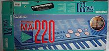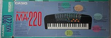 It can be considered a slightly higher grade variant of MA-130 with 2 speakers, additional drumpads, simple chord sequencer and manual chord mode.