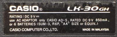 hardware detailsThe German version of Casio LK-30 is built around the CPU "OKI M6755C-20" with external ROM "Sharp LH532KU5" that likely varies with regional variant.