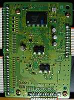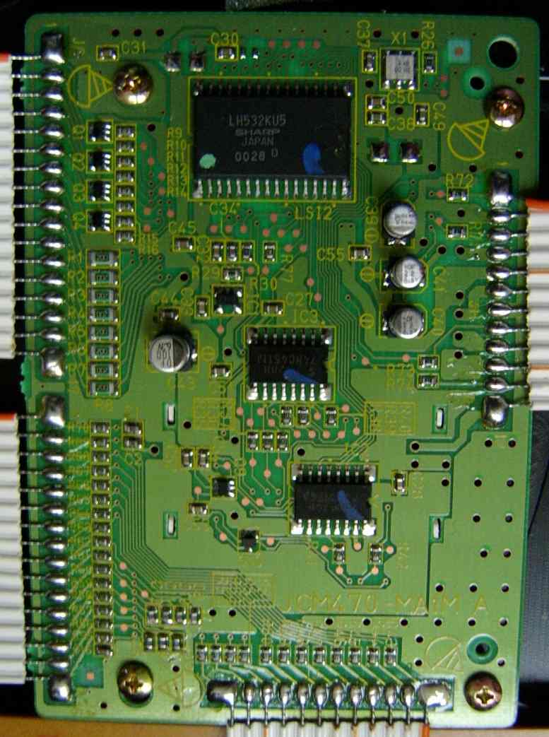 The ROM is likely the documented "Sharp LH532100B" maskrom (32 pin SMD, 256KB) with JEDEC standard eprom pinout (DIP). At least this is no (perishable) flash memory. But dumping SMD stuff would be tough. The digital PCB has additionally a "74HC4511A" (16 pin SMD) and "74H(?)C174A" (16 pin SMD) those likely demux the key LEDs. The only service manual of related hardware I could find is from Casio CTK-411/CTK-431 (with LCD, no keylighting - CTK-431 PDF is higher resolution) and CTK-480. Unusual is that the CTK-411 and CTK-480 keyboard matrix has the keys grouped by 8, while earlier Casios (except VL-1 and early PT-series) had 6er groups (i.e. 2 groups per octave). I haven't examined the LK-30 further, but the led matrix of CTK-480 (similar with no ROM) is wired from CPU pins 88..95 (having each a 220 ohm resistor) through a driver transistor to pins 80..82. The 3-digit LED display is wired among pins 88..95. In CTK-220L the LEDs are wired through driver transistors between CPU pins 88..95 (LX0..LX7) and pins 81..87 (LY1..LY7). pinout M6755The CPU "OKI M6755x-xx" (100 pin SMD, x-xx = software number of internal ROM) is a medium grade home keyboard CPU with internal ROM that was used in many Casio songbank keyboards like LK-30 (M6755C-20) or CTK-480 (M6755B-06) and also in the sampling mini keyboards SK-60. The letter behind "M6755" likely indicates the internal ROM size (count of songs). Not much is known about this chip, beside it contains 12-note polyphonic PCM sound generation with internal stereo DAC and external ROM. Likely it runs a versatile softsynth like in earlier Casio PCM keyboards (see SA-series).In some keyboards (e.g. Casio CTK-220L with CPU "OKI M6755B-13" seen in service manual) it is operated single-chip, while in others it uses external ROM (likely for 100 songs) and in SK-60 it uses an external 8bit RAM for 32KB sample memory. Key leds can be wired in different ways. The clock rate 20.0MHz indicates that this CPU was a new development and no direct relative of the classic SA-series or MT-540 anymore. (Again the address line order is really a mess. Don't ask me why - to ease PCB layout?) E.g. in CTK-220L the data bus lines are used for an LED display and key matrix line names are different, which hints that the internal hardware port names are the "P##", while "KO##" depend on the software number. This pinout is based on the service manual of Casio CTK-411/CTK-431 (software number C-17, which has LCD and no keylighting), CTK-220L, CTK-480 (no external ROM), CTK-485, CTK-501 and SK-60. Some pin meanings differ. The LK-30 (software number C-20) has keylighting and LED display like CTK-480 and external ROM like CTK-411, so pinout may be a mix of both. caution: The KO# numbering of pins 66..77 seems to vary by 1.