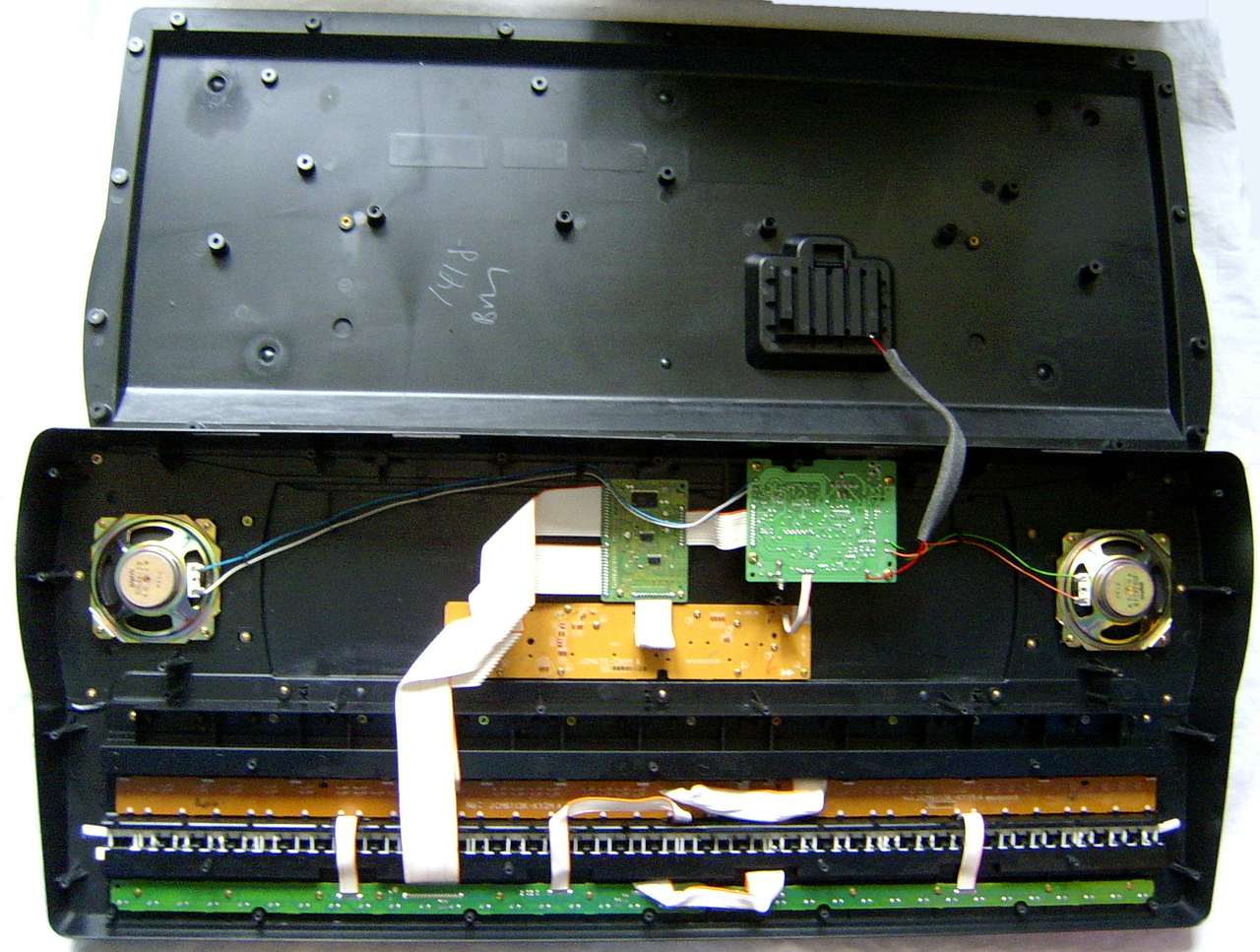 Unfortunately the poor build quality is not only subjective. When I got mine in 2005, the power amplifier IC was exploded with a blast crater in the middle. It is unknown if this was result of a shortcircuit by the electrolytic capacitor plague of its era (see Badcaps website) or because the LK-30 always starts with volume way too high (it has no heatsink), or if the previous owner connected a wrong power supply. After ordering a new IC I got it running. But I read internet comments that the amp of this model often seems to make trouble, causing static noise or feedback out of the speaker. Casio in 2007 had a product recall because their CTK-710 keyboards overheated with fire hazard. It is unknown if the fault was related.