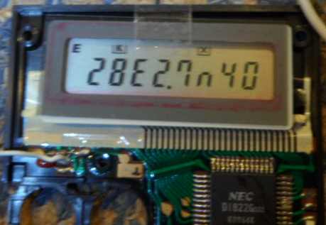 When not mentioned otherwise, all pins were measured in MG-880 but behave the same in others. The clock rate is controlled by a resistor from pin 17 to 16. Estimated on my analogue oscilloscope at pin 17 is about 65.4 kHz (squarewave), but touching with probe reduces note pitch by a bit less than 1 semitone. (In ML-831 I measured 68 kHz, which may be by resistor tolerance or scope inaccuracy.) Touching pin 16 (ramp-like deformed squarewave?) reduces pitch more, which hints that this is input. Connecting both pins with a resistor strongly increases pitch. The desoldered pin 14 is NC (internally not connected); it has high resistance, no reverse diode and also finger hum on oscilloscope does not change waveform contact with the probe. The unused pin 6 is hi and in ML-831 and ML-833 outputs one lo spike during any button press. It is not a matrix out; connecting to inputs does nothing, thus this was likely a keypad test pin. In MG-880 it appears to be an unused input; it stays hi and can be pulled lo through e.g. an 1k resistor, which does nothing. The LCD display signals are made from 4 voltage levels those have no external reference pins. Also the unused pin 50 shows LCD waveform. Pins 20 and 21 are test pins (wired to +Vs) and make interesting glitches when desoldered and pulled lo (keeping them open does nothing). Pulling 21 lo shows segment mess on LCD and writes garbage into ram. I saw in ML-833 that this outputs on matrix pins 51, 52, 1, 2 each a 15-step multipulse (15 data bits?) that changes every time I pull 21 lo. Pins 3, 4, 5 stay hi. In MG-880 the resulting crash sometimes ends up in the middle of the game (also when not in CAL mode) or has nonsense characters in display buffer or M+ memory. Sometimes it beeps until button press (at random pitch). Interesting is that pressing a button repeatedly plays beeps every n-th press (a short bit pattern depending on the button?) which may output internal status bits (like the error beep of a PC mainboard), but the rest seems to be random. Pin 20 is similar but turns LCD off after about 1s (may speedup internal APO counter, sometimes a continuous beep keeps sounding). In ML-833 here power turns on again (performs reset) after disconnecting/ pulling pin 20 hi. While 20 is pulled lo, most matrix outs turn hi, but pin 5 turns randomly lo or hi. But all this behaviour is less spectacular than e.g. in ML-85, which hints that there is only little software involved. It may be that the entire CPU is made from gate logics, because the behaviour mainly shows parts of its normal functions. Particularly I found no hints to hidden melodies or games in ML-831 ot ML-833. Only the character set seems identical. The 4-bit hardware has likely 16 characters {"0".."9", space, "-", 2 bars, 3 bars, "n", "E"), of which "E", "n" and "2 bars" are normally only used by MG-880. The rated power consumption on the type plate of MG-880 is 0.0081W, while ML-833 is 0.006W and ML-831 is 0.0058W. It is unknown if this is caused by technical CPU differences or only how the software uses it. |