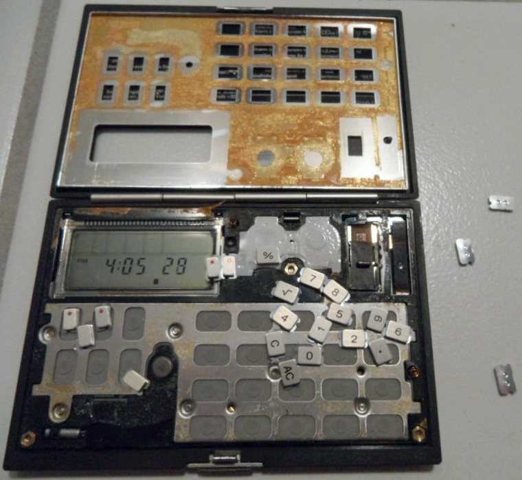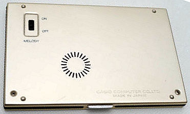 The buttons for melody select ("#"), date alarm I & II and even the squareroot have been omitted, which makes it way less interesting. Only 8 melodies are available, of those the 7 of alarm I can not be selected manually anymore (neither for alarm nor demo), but depend on the day of the week. Also the feeble speaker sounds thin and way too quiet.