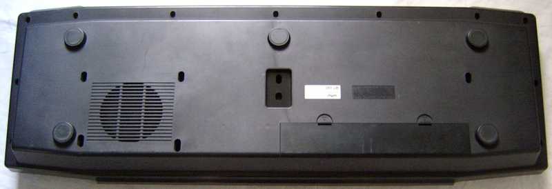 no sound effect pads & -volume slider 2 additional preset sounds {synth reed, metallic sound} (instead of "sound effect" button) different order of semi- OBS preset sounds {piano, harpsichord, vibraphone, jazz organ, pipe organ, brass ens, flute, chorus, bells, (multi-split) percussion | elec piano, funky clavi, jazz guitar, organ, accordion, strings, synth reed, metallic sound, synth-ens, bass} only 1 ROM "HN62404P D27, 8D1" (40 pin DIL, pinout 27C400, 512KB) CPU= "NEC D938GD 002, 8816PK022, Japan" (120 pin SMD) demo lacks effect sounds battery compartment for 6 AA instead of C cells