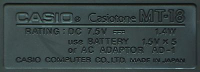 hardware detailsThe Casio PT-80 was a cheap monophonic keyboard with ROM-Pack slot, based on the single chip CPU "NEC D1868G 007". A midsize version (with different PCB layout) was Casio MT-18.