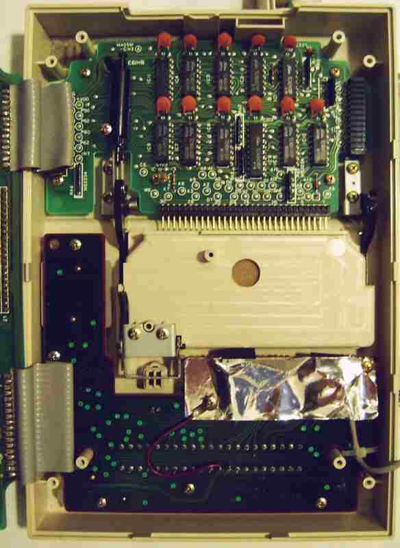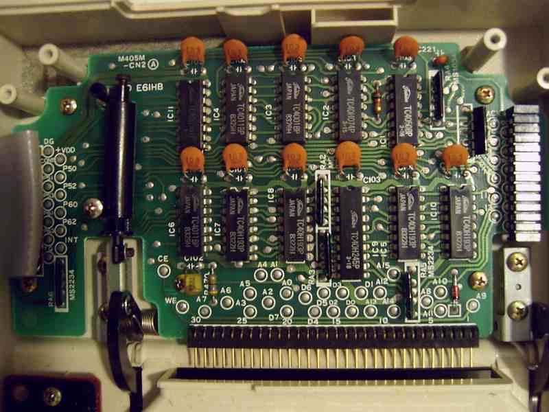 The case is closed with 3 screws. Inside are 2 SRAMs "Toshiba TC5516AFL"