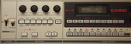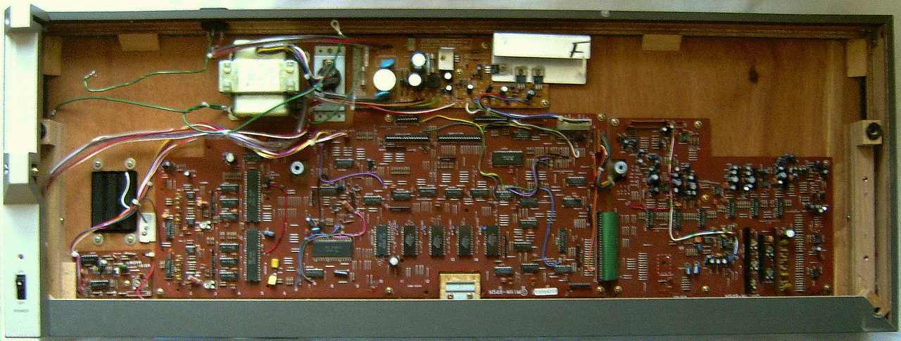 This rare keyboard of 1983 (service manual date) has semi-analogue percussion and a complex multi-track sequencer with LCD and datasette storage. Key features of this heavy 61 keys model was the "sound locator", that permits many different stereo panning effects.