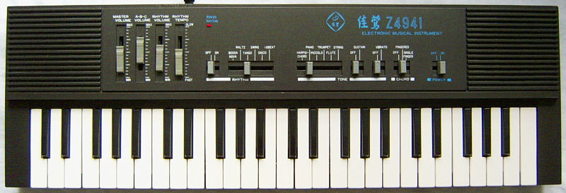 This keyboard seems to be ultra-rare; I never saw any other specimen, nor any other instruments made by "Jiaying". However I guess that they later renamed this company into Jiayin, which was one of the distributors of the absurdly bad Yongmei transistor tooters (see Golden Camel-7A).