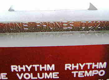 The analogue percussion is of typical old home organ style. Base and tom knock quite dull. The hihats are made from transistor noise. Unusual is that the "open hihat" hisses always 1 step long, no matter how slow the tempo is set, which in slow rhythms makes it rather sound like the hiss of a pneumatic air valve. The tempo can be steplessly adjusted between very slow and quite fast; however the "swing" rhythm is slower than others and thus can be only cranked up to medium tempo.